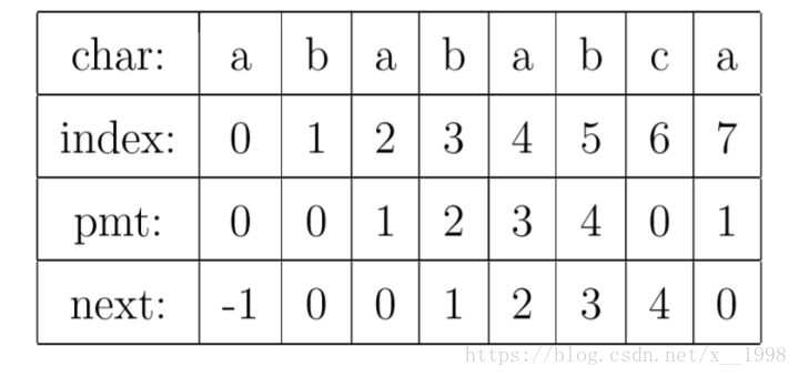 但是这里我们会使用KMP算法中的next数组。next数组存储了每一个索引之前的子字符串的前缀与后缀相同的最大值。